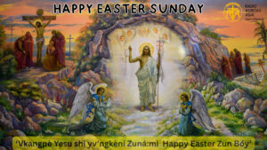 Kristu vdòng taq Vpø’ íwe pèmè vnvmchvngmaq, Kungla Penàmcvp Shvmv’n we Nár ni taq,.. Vkangpè Yesu nø jór pòngbang taqkèní Yerusalem mvring svng gòng lúngì tvrà svng dvdvm màná mvsvtshì nø wáshì tvrà íe. Vkangpè Yesu vrá Zun á:mì we Paska Zun bóy ( Easter) ò vzàng Nár ni gø íe. Vrá nø, Shànshér we Nár svng nvmlat pvngshì angni gø íe. Shvngømréò lvpat mvshøl svng èyvng lúngò dvgvp, (4)vbí yámvzøq bé lúngì lvp kèní, yalòng Palm Sunday wàwe kungla penàmcvp Shvmv’n we bóy angni svng Yerusalem yv’ng Nvmlat wá pvngyangà tvrà svng shálúnshìe.