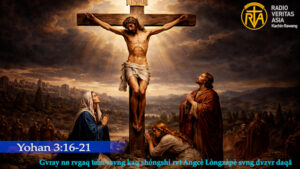 (Yohan 3:31-36)… Mvdv̀m kèní dì daqì pè Ang nø, shvngbe mvdv̀mø ringe. Rvgaq kèní í pè ang nø, rvgaqò pv̀n í nø, rvgaq dang wa shø̀ne. Muqlàng kèní dì daqì pè Ang mv̀ng nø, vsvng shvngbe mvdv̀mø ringe. x 32 A:ngí vyv́ngshaq vtáshaq rì shø̀:nò nìgø, A:ngí shø̀:nò kà svng kagǿí gø màtōò. y 33 Iwe A:ngí shø̀:nò kà svng vtoò gǿí nø, Gvray nø dìnge, wa lòng svng shálv́m zangkwè gā:pmò we íe. 34 Gvrayí dvzv́r daqà pè svng nø Shànshér Pvlàcè dv̀n vlim dø vzíshaq í rvt A:ngí nø Gvray kàrì shø̀:nòe. z 35 Angpèí nø Angcè pè svng shù:ngò rvtnø, vl dv́ngte nø Ang wur taq vzíshaq íe. a 36 Angcè pè svng kv́m gǿ nø dvciq lvpat gø̀nshaq lúne; Angcè pè svng mvkv́m gǿí mv̀ng nø, gø̀nshaq yv́ng mvlú:nò. Gvray shv̀mná høpnøt nø ang mvdv̀mø vhap dv̀ng wae,” a:lòe.
