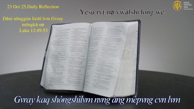 23 Oct 25. Luke 12:49-53 Dèni nònggùn lùshì lvm Gvray móngkà nø Luka 12:49-53 vdòng taqkèní ínø Yesu rvt nø vwálshì long we, Mongkà mvshøl taqkèní íē Kristu Gvray ínø Mongzøl lòng mø-í nø, Nønt vtøp lvm, mvdò vwángshì lvm…